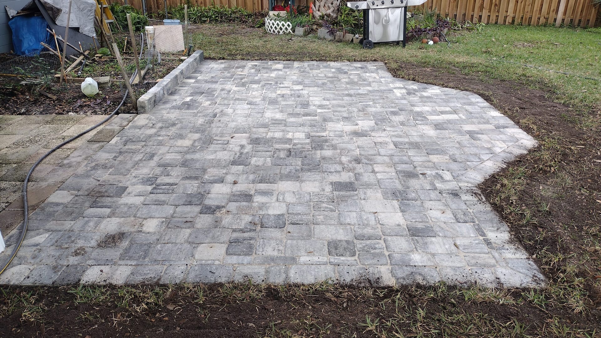 Gallery Do You See What We See? Our Work Portfolio: AllBefore and AftersFinished Product Paver Walkway ExtensionPaver walkway custom fit for drain covers and PVC pipes along corner of house Paver Pool Deck and CopingPaver pool coping and deck around curved edge. Backyard Patio, Pond Wall, and Brick BarBackyard wrap-around pond wall and countertop for grill and bar. Pool Enclosure Rock Garden Bed Paver EdgingPaver wall along rock bed for plants behind pool enclosure. Large Paver Driveway Before with grass:Paver Driveway Before: Large Paver Driveway After with stone: Side View Paver Sidewalk and Driveway Before: Side View Paver Sidewalk and Driveway After: Large Paver Driveway Before with cracking concrete: Large Paver Driveway After Adding Even More Parking Space: Paver Garden Walkway Before: Paver Garden Walkway After: Custom Pool Steps Before: Custom Pool Steps After: Load More